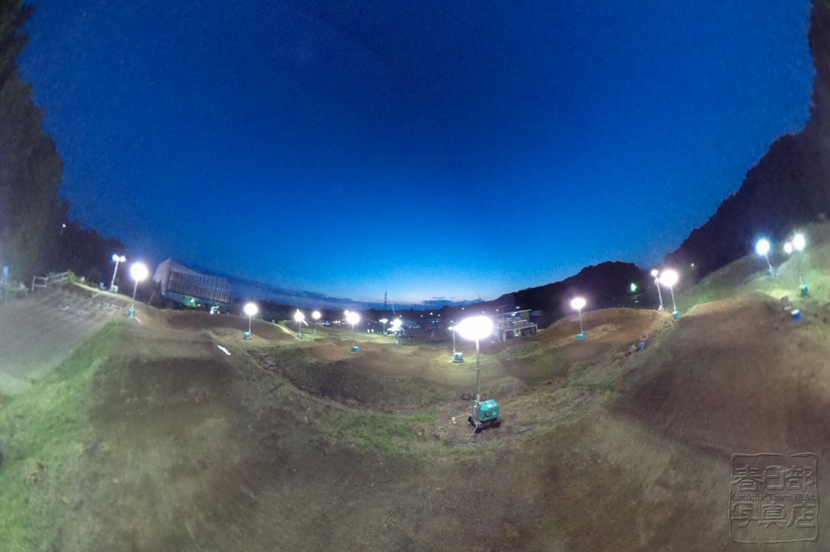 2モト目後半からはうっすらと暗くなり、テンションが上がり始める。3モト目にはあたりはほぼ闇となりコースがくっきりと浮かび上がる。